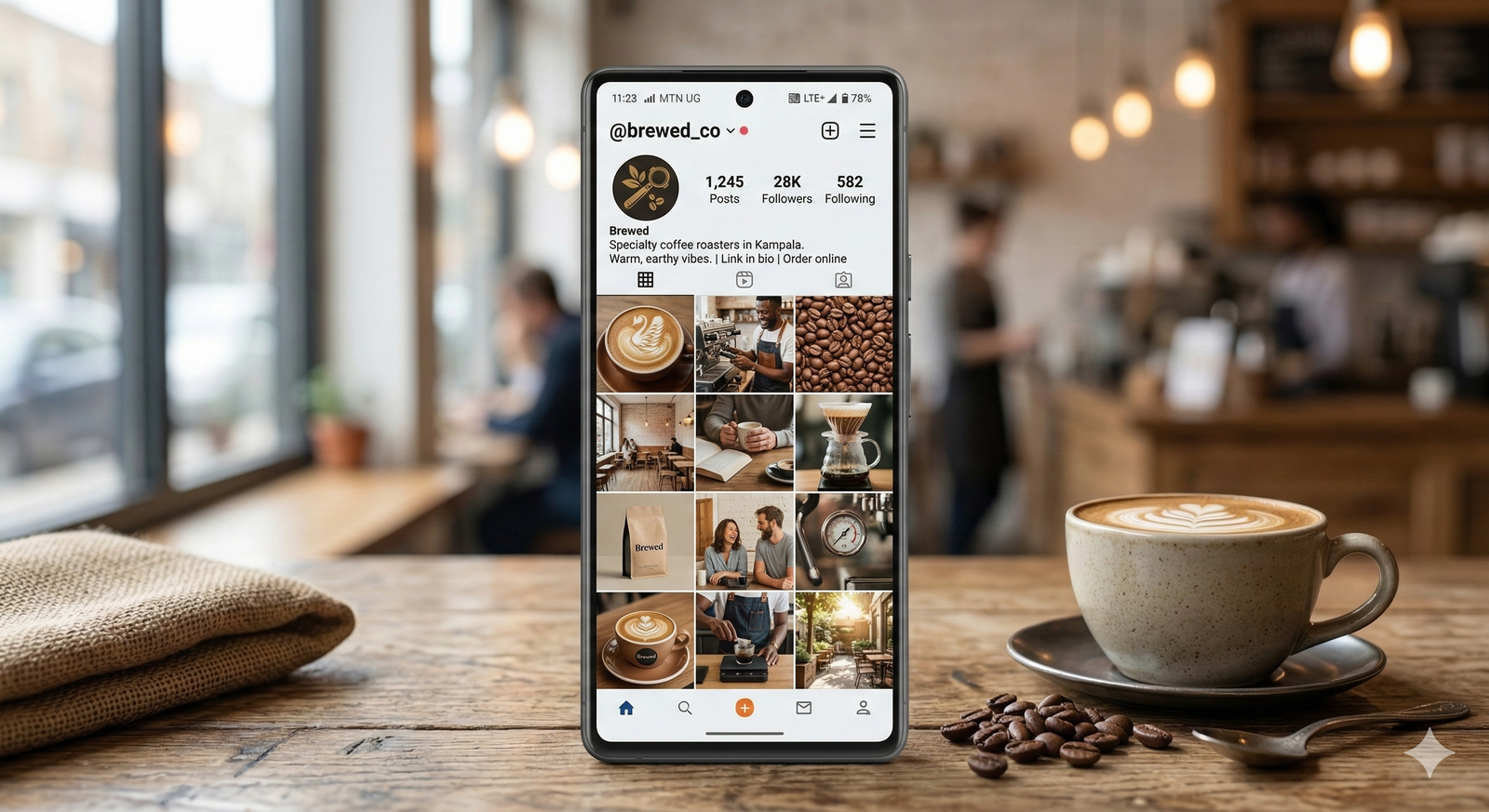 Full social media strategy and execution for a new specialty coffee brand entering a saturated Kampala market — growing from zero to 28,000 engaged followers in 6 months.
